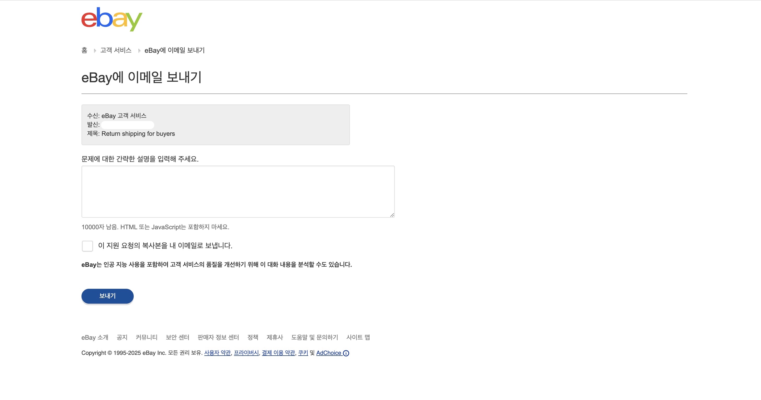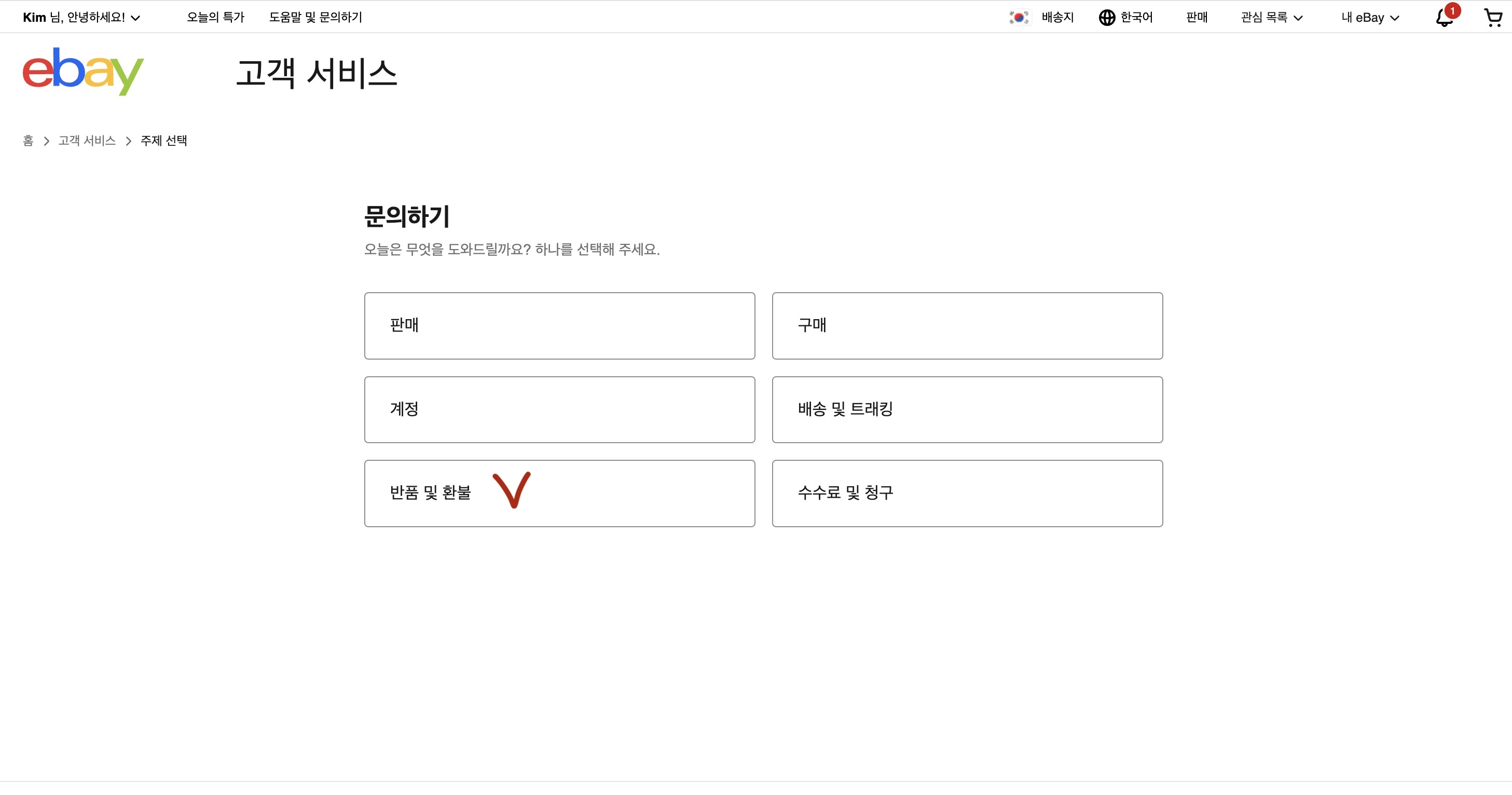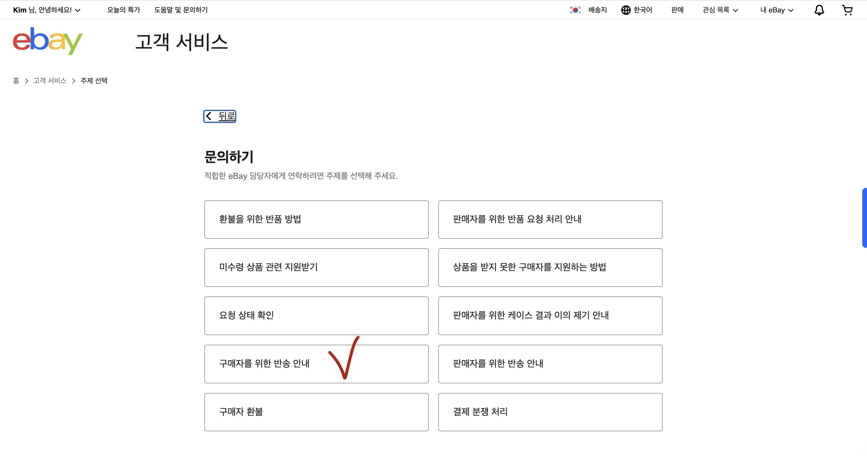 eBay에 고객센터 메뉴가 대부분 AI로 변경되어 실제로 고객센터와 연락하려면,