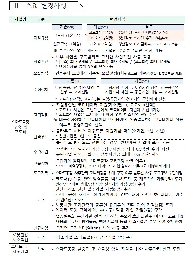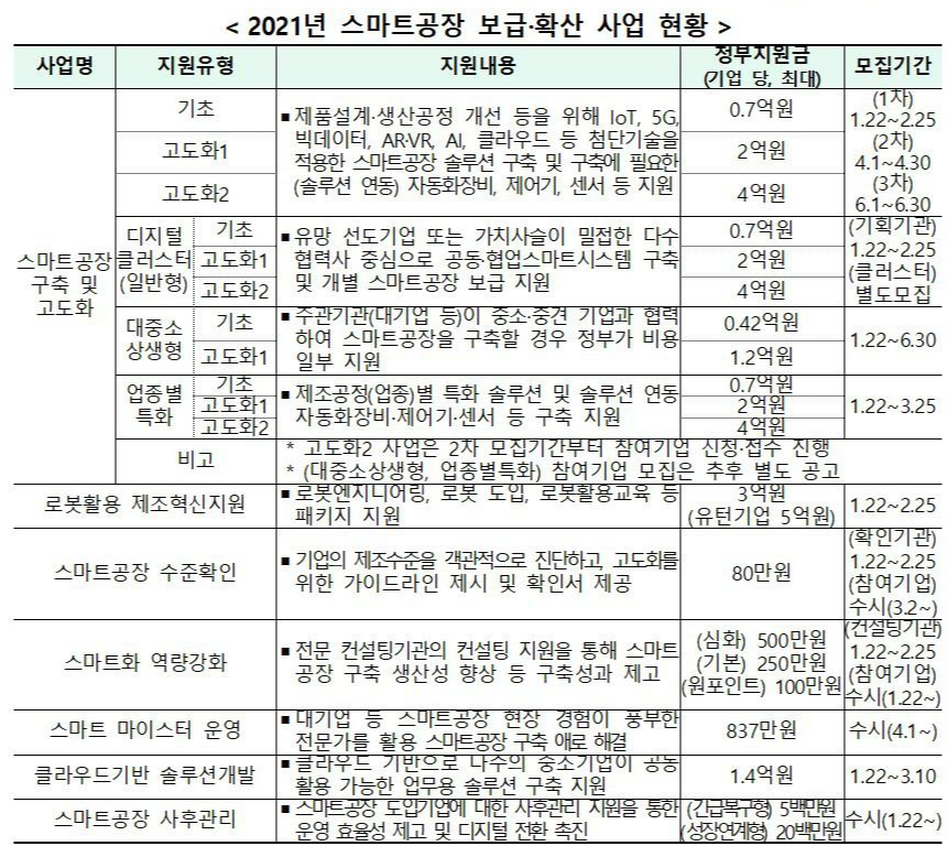 2021년도 스마트 공장 보급 사업에 대한 내용입니다.
