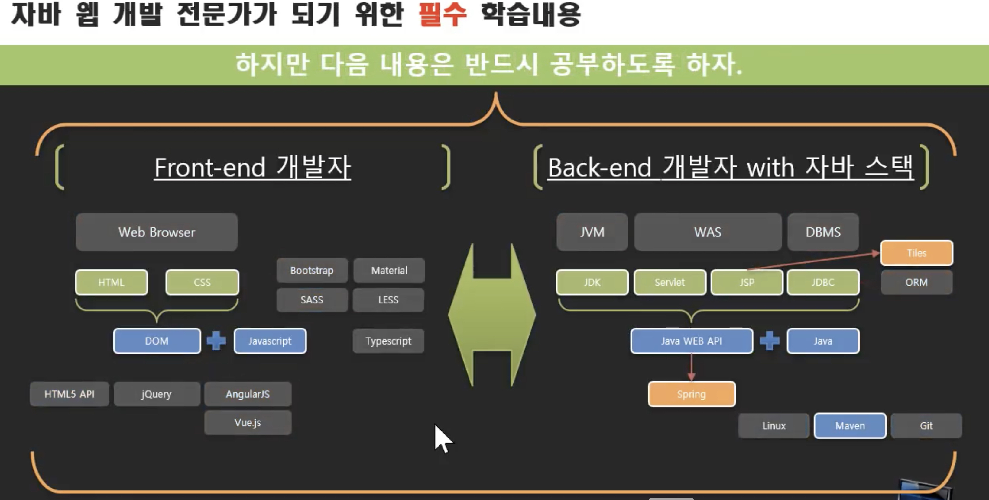 특히 Java 기반의 Web 개발자들이 알아야 할 Front-end & Back-end 모두에 대한 설명을 하고 있다.