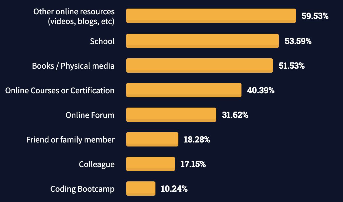 지난 8월 2일 발표된 ‘2021 스택 오버플로우 개발자 설문조사(Stack Overflow 2021 Developer Survey)’에 따르면 개발자의 학습 방식에서 큰 변화가 있었다. 보고서는 18세 미만 코더의 경우 (책과 학교를