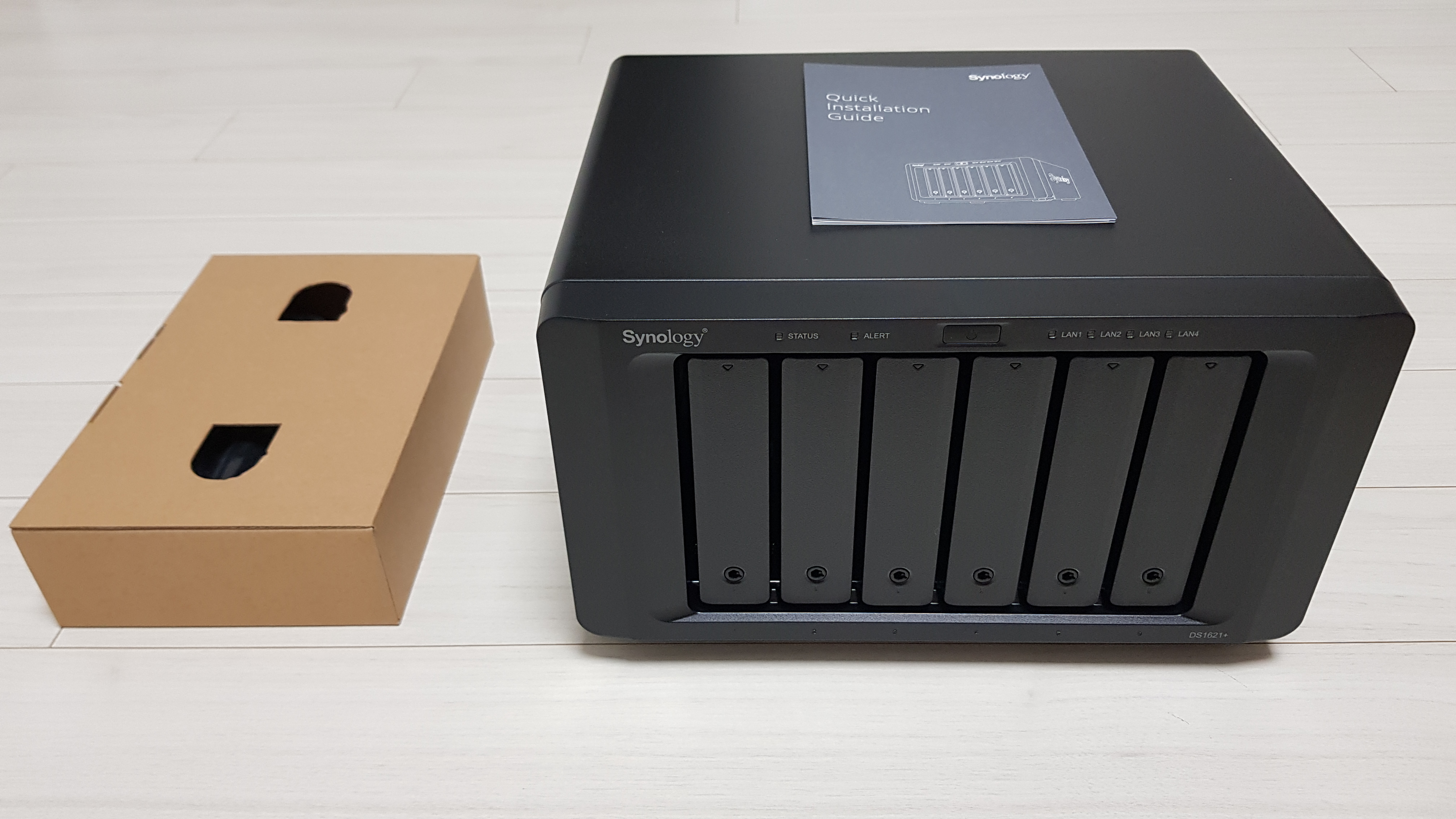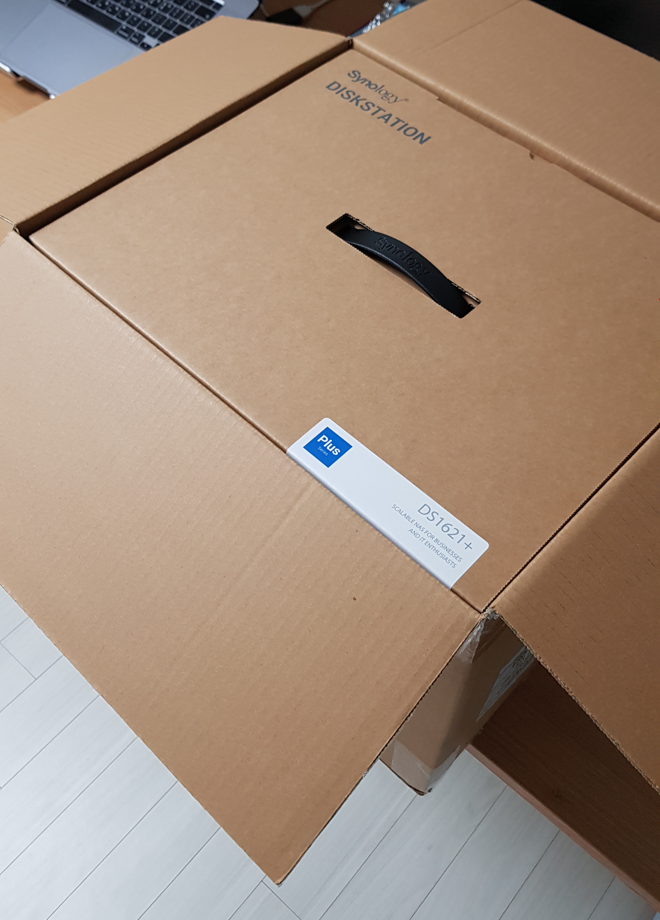 포장을 열면 내부에 제품 상자가 들어 있는 구조, DS1621+ 모델명이 보이다.