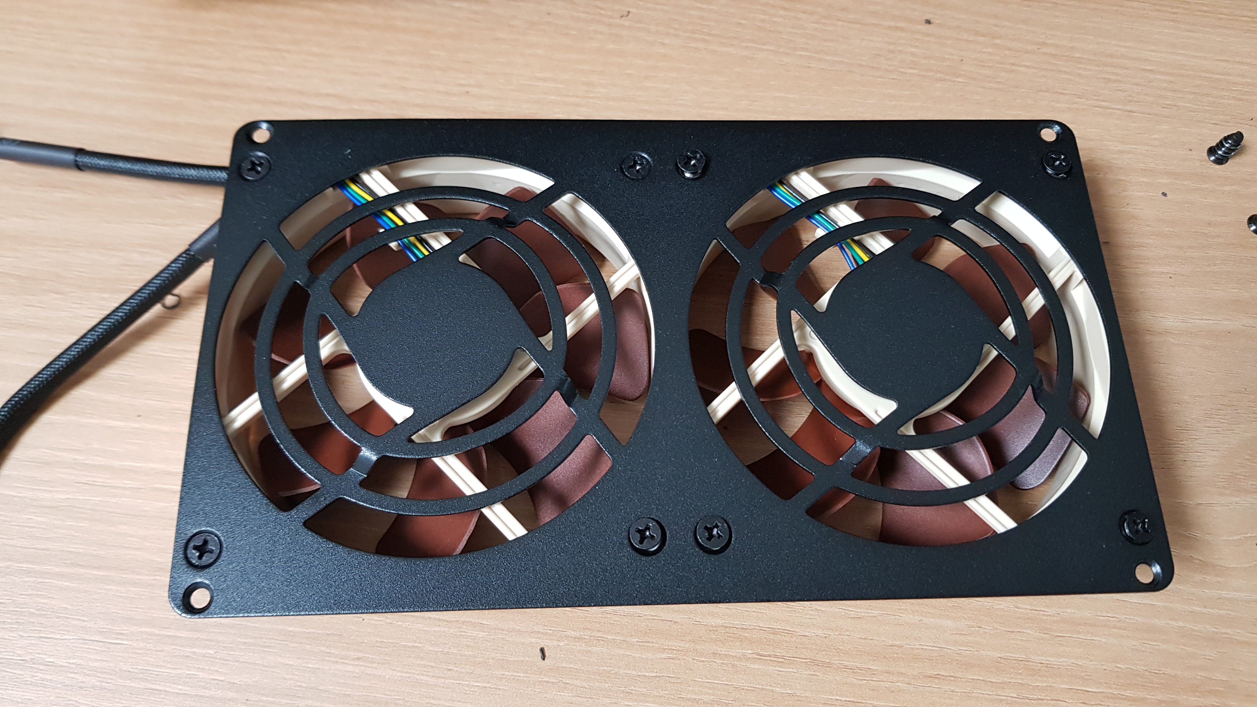 - 팬 체결후 본체에 넣을때 케이블 위치를 중앙으로해서, 체결해야 들어 간다....
