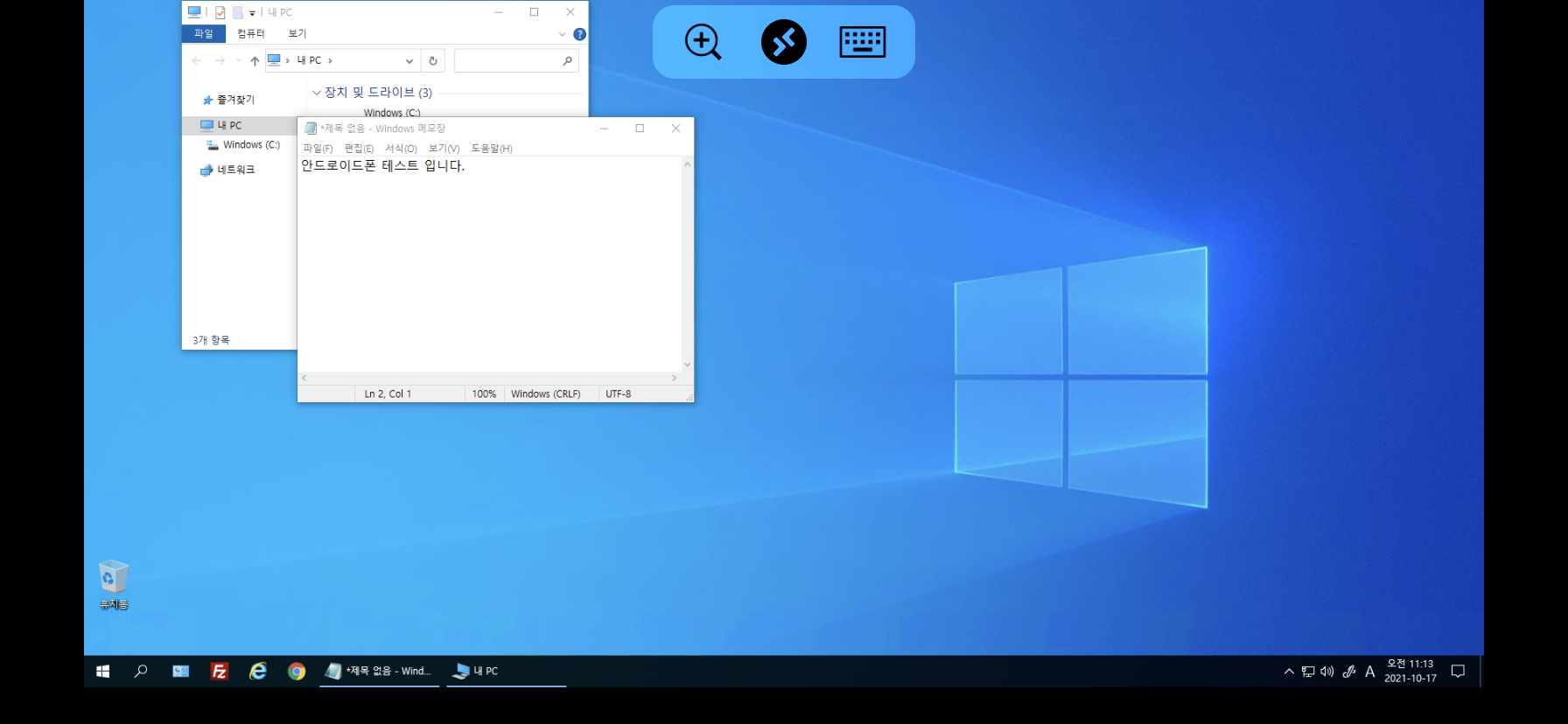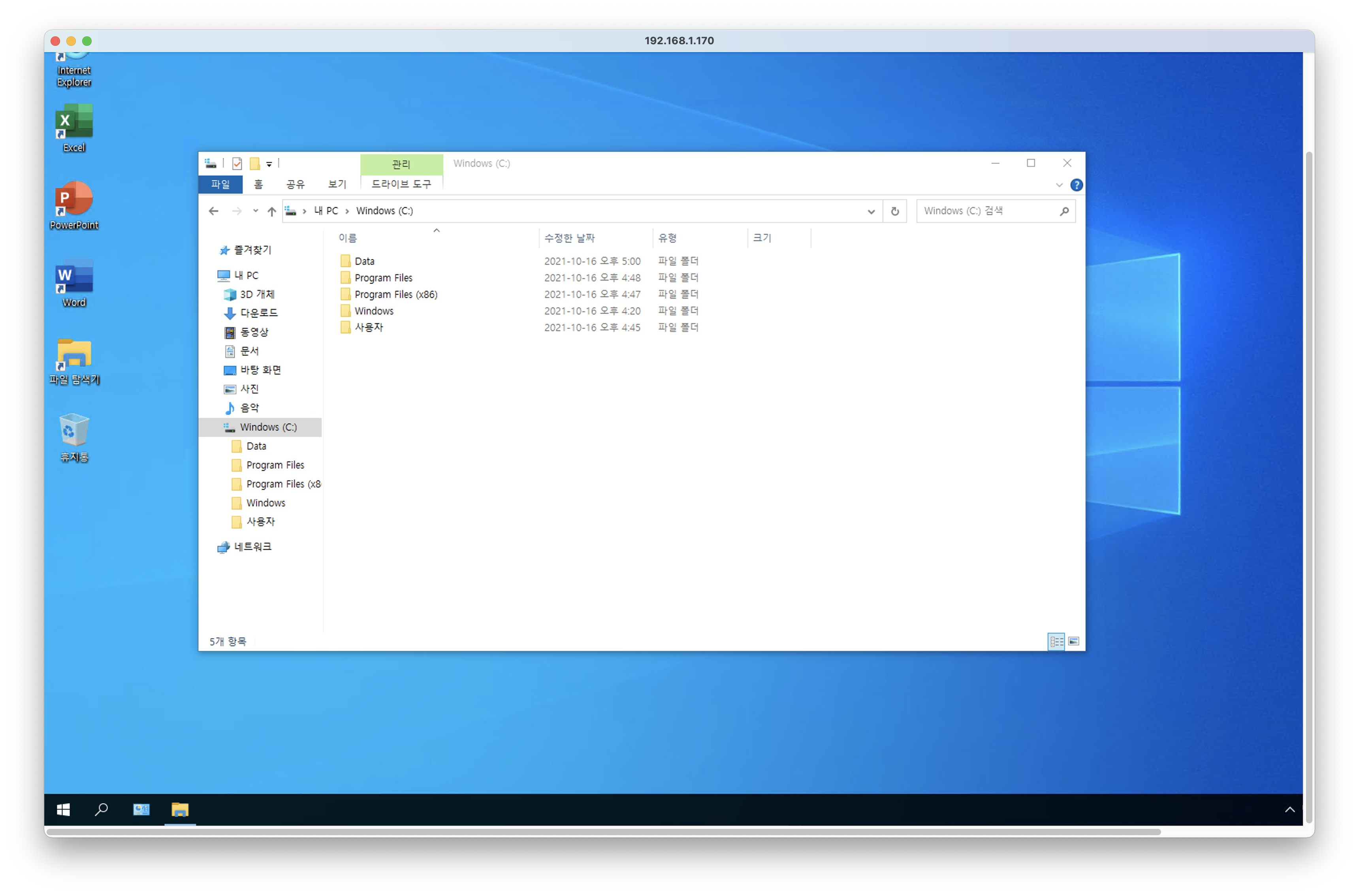 . 가상 컴퓨터와 동일한 IP 대역(동일한 공유기에 연결)에서 사용할 경우, 내부 IP를 입력해주면 바로 연결됩니다.
