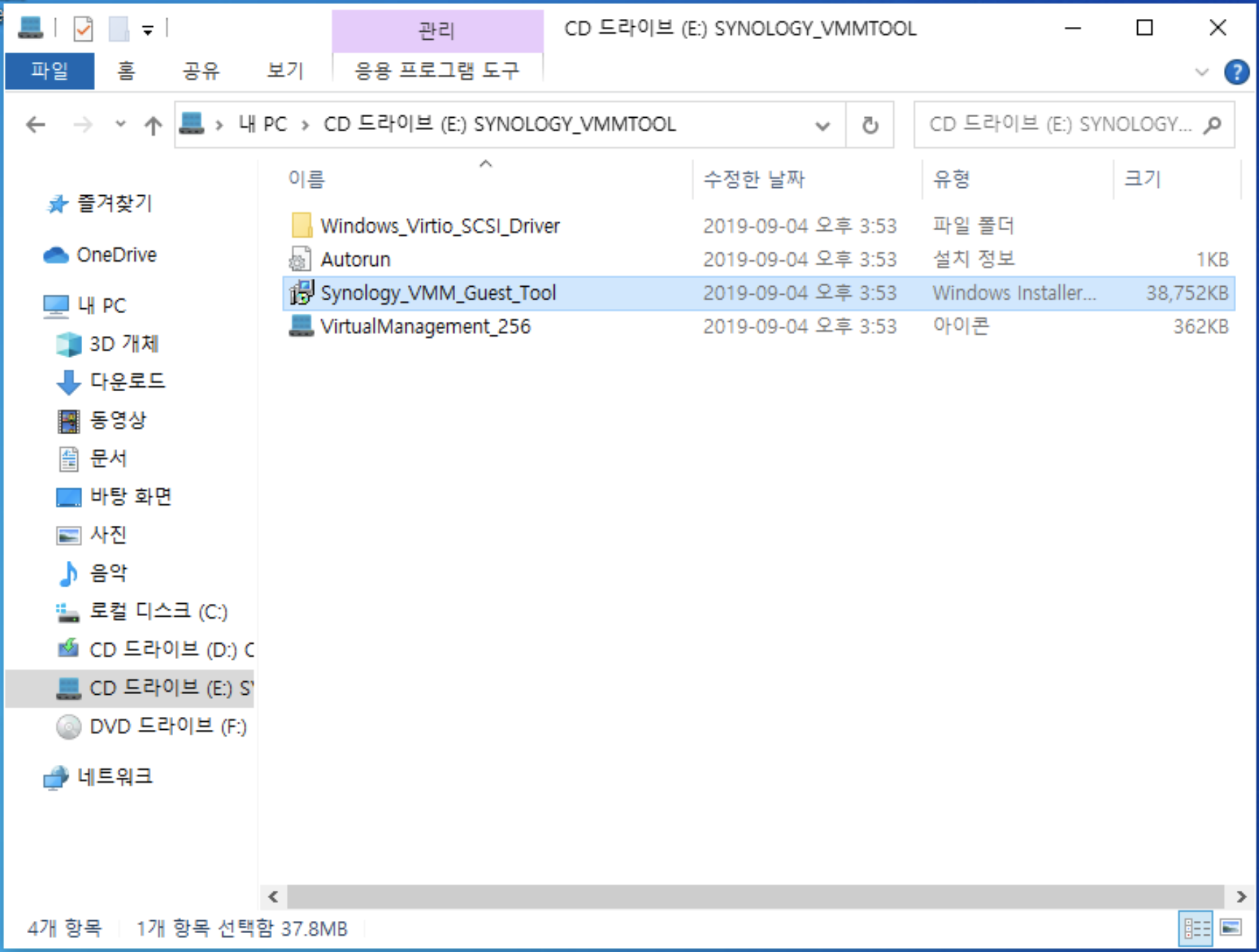- 가상 컴퓨터에서 탐색기에 마운트되어 있는 'SYNOLOGY_VMTOOL' 폴더의
