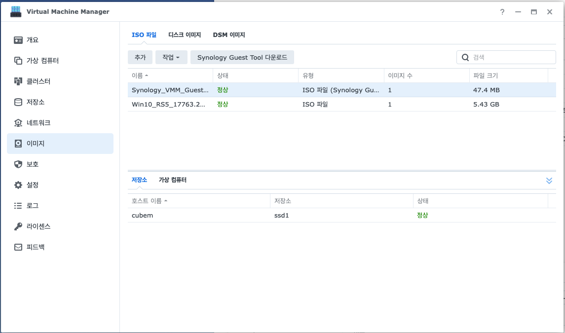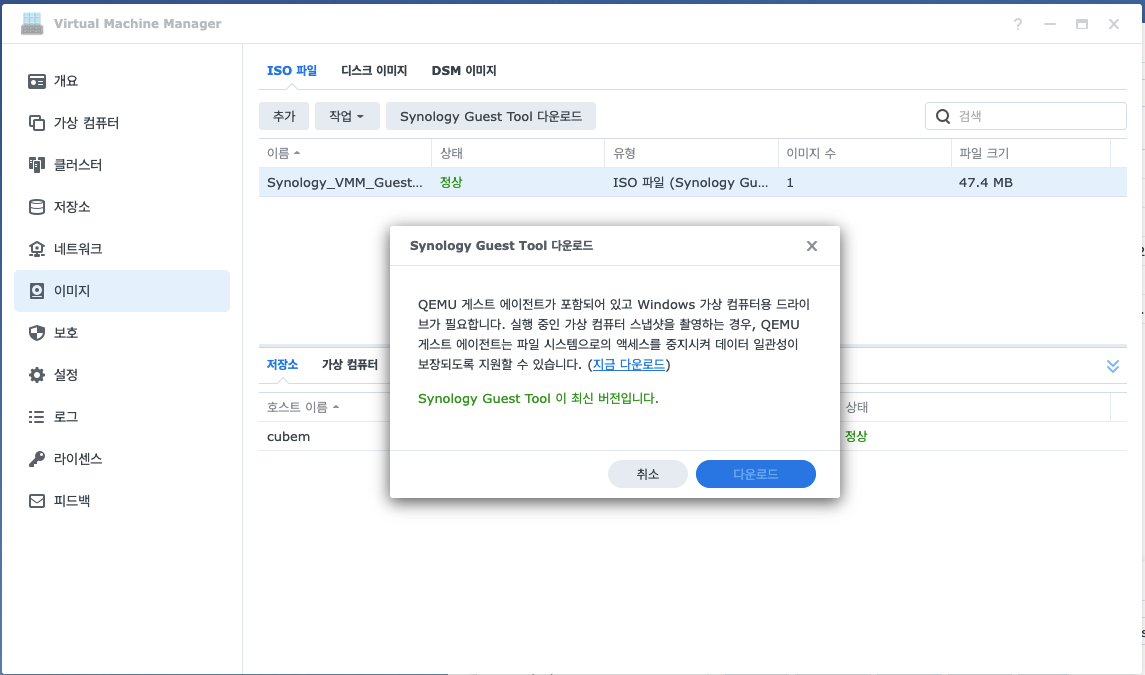 - Agent, 드라이버 등이 포함된 Synology Guest Tool 설치 이미지(ISO) 파일 준비