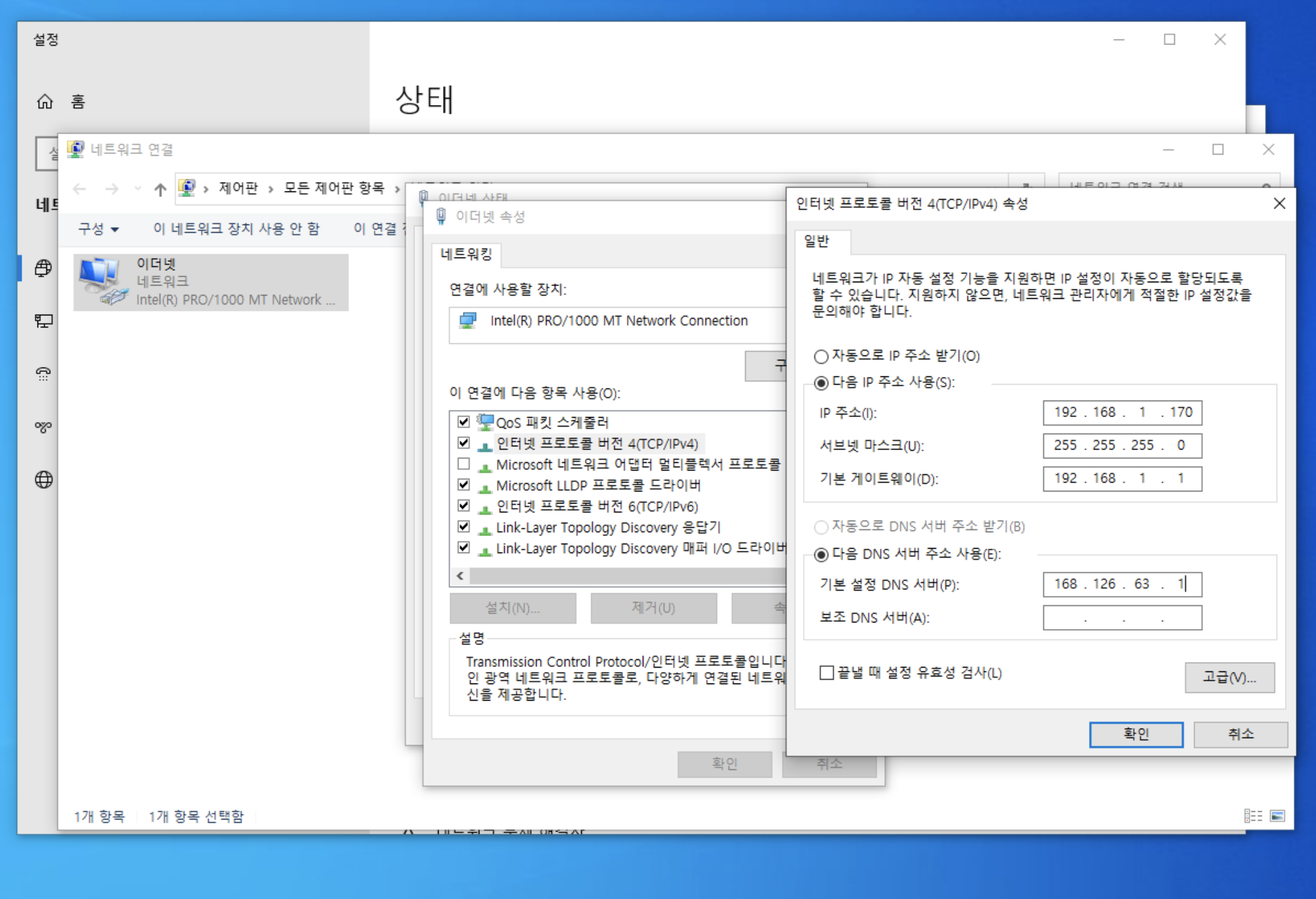 - 가상 컴퓨터의 네트워크 설정에서 고정 IP로 설정해줍니다.