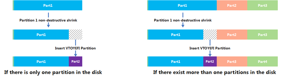 1.0.59부터 Ventoy는 Ventoy2Disk.exe에서 비파괴 설치에 대한 실험적 지원을 제공합니다.